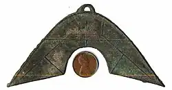 These currency are often named based on their shape, for example there is "fish money" (魚幣), "halberd money" (戟幣), and "bridge money" (橋幣).[7] Some specimens of "bridge money" are further subdivided into more categories such as "tiger head bridge money" and "dragon head bridge money" based on their shape.[7]