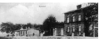 At dawn on 22 January a Soviet Army unit consisting of tanks and infantry arrived, and, possibly due to the presence of some German soldiers in uniform, opened fired on the many people and buildings at the station, killing 140 to 150. The few German soldiers were taken prisoners, and a guard troop was set to make sure the refugees remained in place. These were removed after a week, whereupon the remaining people dispersed. The dead from both the train wreck and the Russian attack were buried in shallow graves in sites near the railway station in March 1945.[2] There are two plaques in memory of the event on the station building, one in Polish and the other in German.