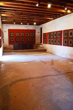 The cloister complex is now the Museo Virreinal de Zinacantepec (Viceregal Museum of Zinacantepec).[15] It has twenty exhibition halls, with more than 275 works of art over the three centuries of the colonial period in Mexico. The collection also include more ordinary items such as cooking utensils, weapons, furniture and clay objects.[14] The collection includes sixty paintings of viceroys and archbishops of New Spain, wood sculptures of religious figures, Spanish armour and a Christ figure made of “pasta de cana” or meshed corn stalks.[1] Most of the paintings have been classified an anonymous due to the lack of signatures. The museum is considered to have one of the most important colonial era collections in the state, along with the Ex Monastery of Acolman and the Museo Nacional del Virreinato in Tepotzotlan. More than 300 pieces of the collection were the subject of a major restoration project in 2003 at a cost of 500,000 pesos.[15]