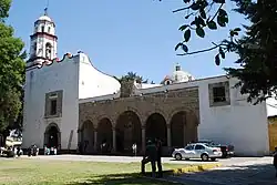 In the 18th century, the residents of this mountain moved to settle alongside the Franciscan monastery established here in the 16th century.[2] This monastery is the best preserved of a network of missionaries established in the Toluca Valley in the mid 16th century. Today, the complex functions as the parish church, with the cloister dedicated as the colonial era museum of the state of Mexico.[3]