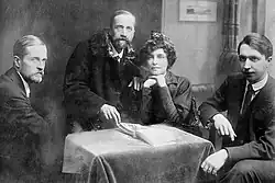 In 1901 Gippius and Merezhkovsky co-founded the Religious and Philosophical Meetings. This 'gathering for free discussion', focusing on the synthesis of culture and religion, brought together an eclectic mix of intellectuals and was regarded in retrospect as an important, if short-lived attempt to pull Russia back from the major social upheavals it was headed for.[14] Gippius was the driving force behind the Meetings, as well as the magazine Novy Put (1903–04), launched initially as a vehicle for the former. By the time Novy Put folded (due to a conflict caused by the newcomer Sergei Bulgakov's refusal to publish her essay on Alexander Blok), Gippius (as Anton Krainy) had become a prominent literary critic, contributing mostly to Vesy (Scales).[13]
