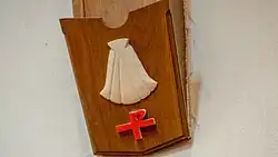 The sixth and final shield on the left side of the nave depicts Flaying Knives; representing Bartholomew. He preached the Gospel of Christ in India and then went to Armenia. The flaying knives represent the manner of St. Bartholomew's death; he was flayed alive by barbarians in Armenia.
