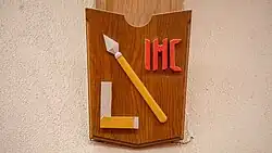 The first shield we encounter on the right, our seventh shield, is one depicting a Spear and Square. This shield represents Thomas, who was one of the first to acknowledge the Lord’s divinity with his exclamation, “My Lord and my God!” when Jesus appeared to the disciples after his resurrection (John 20:28). Thomas stood out among all the disciples during Jesus’ short ministry because of his doubts. The carpenter's square stands for the church, St. Thomas is said to have built with his own hands in India; the spear or lance is a sign of the purported manner of his death.