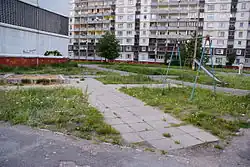 Zolitūde (Latvian pronunciation: [ˈzɔlituːde]) is mainly an apartment house neighbourhood (or microdistrict) located in the western part of Riga, the capital of Latvia. Zolitūde is a centrally planned estate, consisting mostly of prefabricated concrete block Brutalist style homes built in late Soviet times. Construction started in 1984, and was mostly halted in 1991, when Latvia gained independence from the USSR. Large parts of the population, as in similar neighbourhoods of Riga, are Russian speaking. Zolitūde had been a mixture of council housing and co-operative flats, but many properties have been privatised since the fall of the Soviet Union.