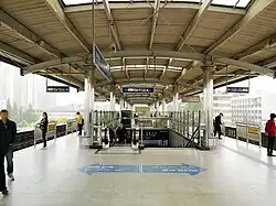 Zongguan station (Chinese: 宗关站) is a station of Line 1 and Line 3 of Wuhan Metro. It entered revenue service with the completion of Line 1, Phase 1 on July 28, 2004. It is located in Qiaokou District.[1] The station has an island platform and a single-track crossover on the west end of the station. The station served as the terminus of Line 1 from 2004 to 2010.[2] The Line 3 station opened on December 28, 2015.