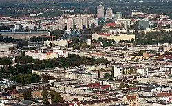 Zygmunt Krasiński Square is located in the Przedmieście Oławskie district.[6] This area forms part of Wrocław's downtown zone,[6][12][13] a central area densely filled with urban fabric, characterised by mixed residential and other functions,[13] primarily residential-service buildings.[6][12]