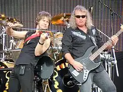 Kansas is an American progressive rock band that became popular in the 1970s initially on album-oriented rock charts and later with hit singles such as "Carry On Wayward Son" and "Dust in the Wind". The original members included: Phil Ehart – drums, percussion; Dave Hope – bass, vocals; Kerry Livgren – guitars, keyboards, synthesizers, vocals; Robby Steinhardt – violin, vocals; Steve Walsh – keyboards, synthesizers, percussion, vocals; and Rich Williams – guitars.