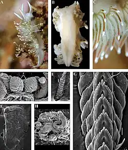 - Korshunova, T.A., Martynov, A., Bakken, T., Evertsen, J., Fletcher, K., Mudianta, I.W., Saito, H., Lundin, K., Schrödl M. & Picton, B. 2017. Polyphyly of the traditional family Flabellinidae affects a major group of Nudibranchia: aeolidacean taxonomic reassessment with descriptions of several new families, genera, and species (Mollusca, Gastropoda). ZooKeys 717: 1–139. DOI: 10.3897/zookeys.717.21885. Reference page.