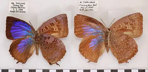 - Pinratana, A., 1981. Butterflies in Thailand, Vol. 4, Lycaenidae.Viratham Press, Bangkok. Reference page.