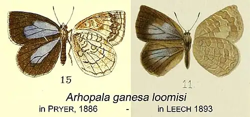 - Arhopala ganesa var. loomisi Pryer; Leech, [1893](2): 343, pl.30 fig.11.