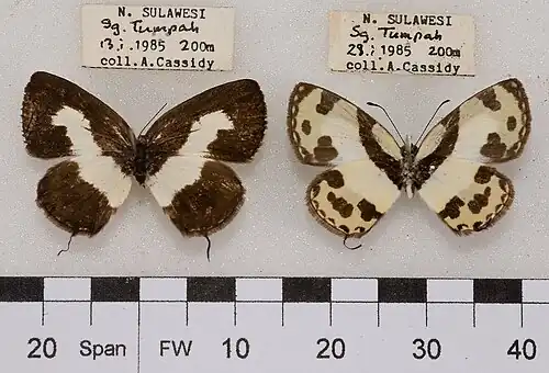 - Vane-Wright, R.I. & de Jong, R. 2003. The butterflies of Sulawesi: annotated checklist for a critical island fauna. Zoologische Verhandelingen 343: 3–267, figs 1–14, pls 1–16. Online. Reference page.