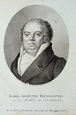 (Israel) Karl Asmund (Carl Asmunt(Asmus)) Rudolphi (1771–1832), Swedish-born German botanist and naturalist; credited as the "father of helminthology".
