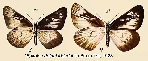 - Schultze, A., 1911. Epitola aus dem afrikanischen Aequatorial-Urwalde. Deutsche Entomologische Zeitschrift, Iris 25: 95-96. BHL. Reference page.