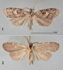 - Todd, E.L. 1976. A revision of the genus Dunama Schaus (Notodontidae). Journal of The Lepidopterists' Society 30(3): 188-196. Full article (PDF). Reference page.