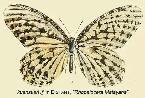 - Elymnias künstleri Honrath, 1885: 276, pl.8 fig.3; Distant, 1886: 422, pl.41 fig.9.