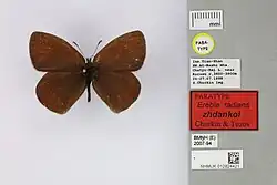- Erebia radians zhdankoi Churkin & Tuzov, 2000: 92, Pl.1 figs 4-6.