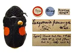 - Schoolmeesters, P. 2017. Scarabs: World Scarabaeidae Database (version Jul 2016). In: Roskov Y., Abucay L., Orrell T., Nicolson D., Bailly N., Kirk P., Bourgoin T., DeWalt R.E., Decock W., De Wever A., Nieukerken E. van, Zarucchi J., Penev L., eds. 2017. Species 2000 & ITIS Catalogue of Life, 30th January 2017. Digital resource at www.catalogueoflife.org. Species 2000: Naturalis, Leiden, the Netherlands. ISSN 2405-8858. Reference page. [accessed on May 13, 2017]