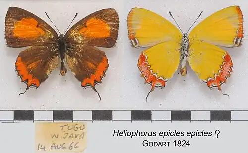 - Heliophorus epicles epicles (Godart); Eliot, 1963.