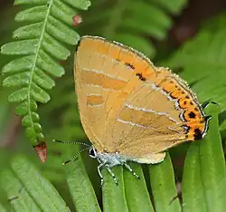 - Dipsas lutea Hewitson, [1865]: 67, pl.26 figs 9-10; Pryer, 1886: 13, pl.4 fig.4.