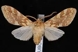 - English: Spotted tussock moth; Yellow-spotted Tiger Moth