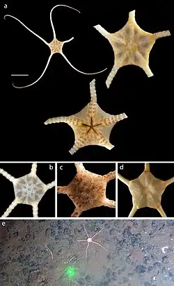 - Clark, H.L. 1917. Reports on the scientific results of the Expedition to the Tropical Pacific in charge of Alexander Agassiz, on the U.S. Fish Commission Steamer Albatross, from August, 1899, to march, 1900, Commander Jefferson F. Moser, U.S.N., commanding. XVIII. Reports on the scientific results of the expedition to the eastern tropical Pacific in the charge of Alexander Agassiz by the U.S. Fish Commission steamer Albatross, from October 1904 to March 1905, Lieut. Commander L.M. Grant U.S.N. commanding. XXX. Ophiuroidea. Bulletin of the Museum of Comparative Zoology. 61(12): 429-453, pls I-V. BHL Reference page.