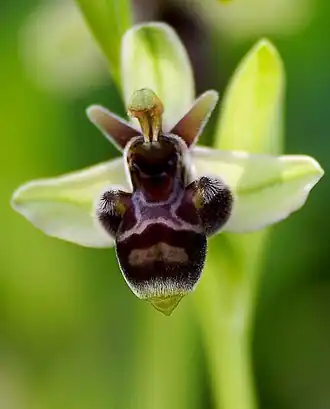 - Formula hybridae: Ophrys bombyliflora Link (1800) × Ophrys scolopax subsp. apiformis (Desf.) Maire & Weiller (1959 publ. 1960)