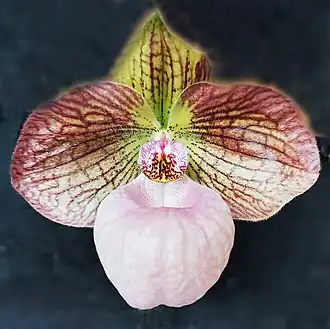 Paphiopedilum × fanaticum Koop. & N.Haseg., Orchid Advocate 18: 50 (1992)