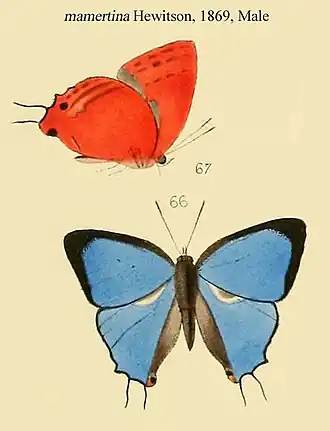 - Myrina mamertina Hewitson, 1869 (Suppl.): 2, pl. 2, figs 66, 67 ♂.