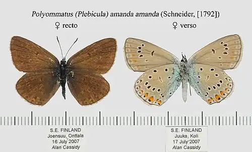 - Polyommatus (Neolysandra) amandus (Schneider); Korb & Bolshakov, 2011: 95.