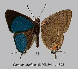 - Camena cretheus de Nicéville, 1895: 294, pl. P, fig. 35.