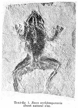 - Okada, Y. 1937. 日本産蛙の化石 [A fossil frog from Japan.] Transactions and Proceedings of the Palaeontological Society of Japan 6: 27–29 (243–245). DOI: 10.14825/prpsj1935.1937.27 Reference page.