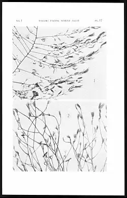- Taylor, W.R. 1945. Pacific marine algae of the Allan Hancock Expeditions to the Galapagos Islands. Hancock Pacific Expeditions. 12: i–iv, 1–528, 3 figs, 100 pls. Online BHL Hathitrust Reference page. : 106, pl. 2: figs 12–17; pl. 17: fig. 1.