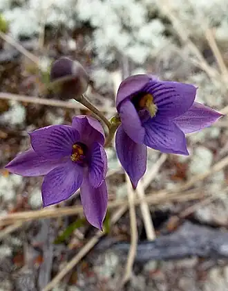 - Formula hybridae: Thelymitra longifolia J.R.Forst. & G.Forst. (1776) × Thelymitra pulchella Hook.f. (1853)