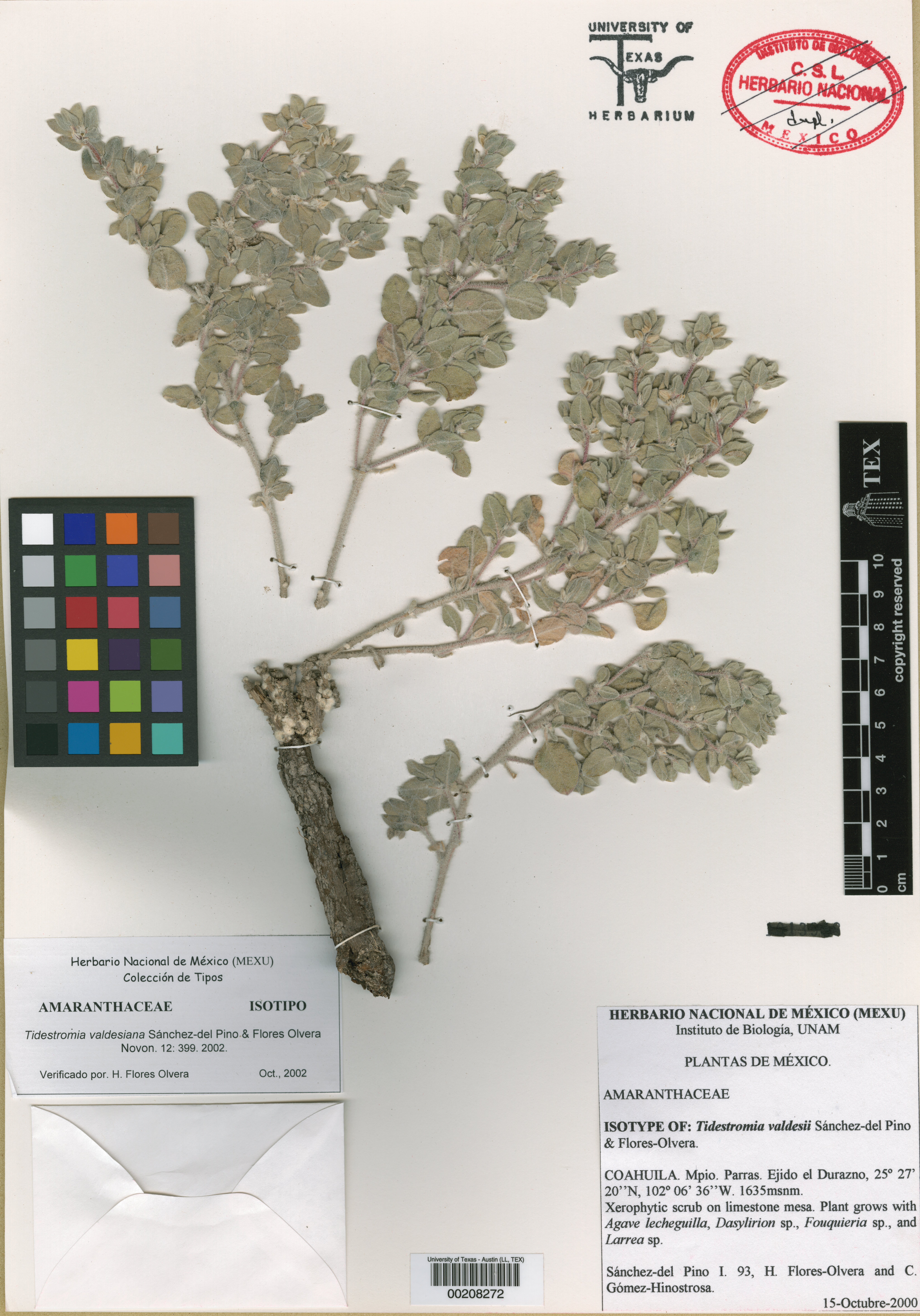 Tidestromia valdesiana Sánch.Pino & Flores Olv., Novon 12(3): 399 (–401; figs. 1, 2A, 3A, C) (2002).