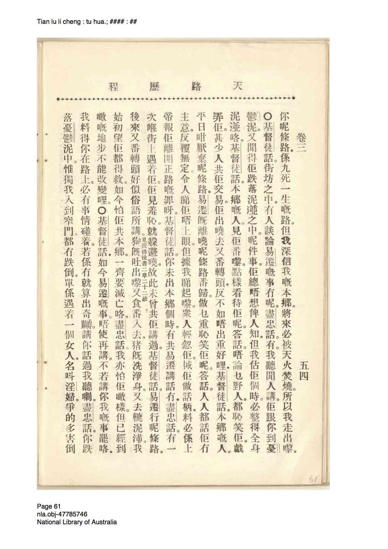- 1921, Rev. George Piercy, transl., 天路歷程土話, Canton: South China Religious Tract Society, page 54: