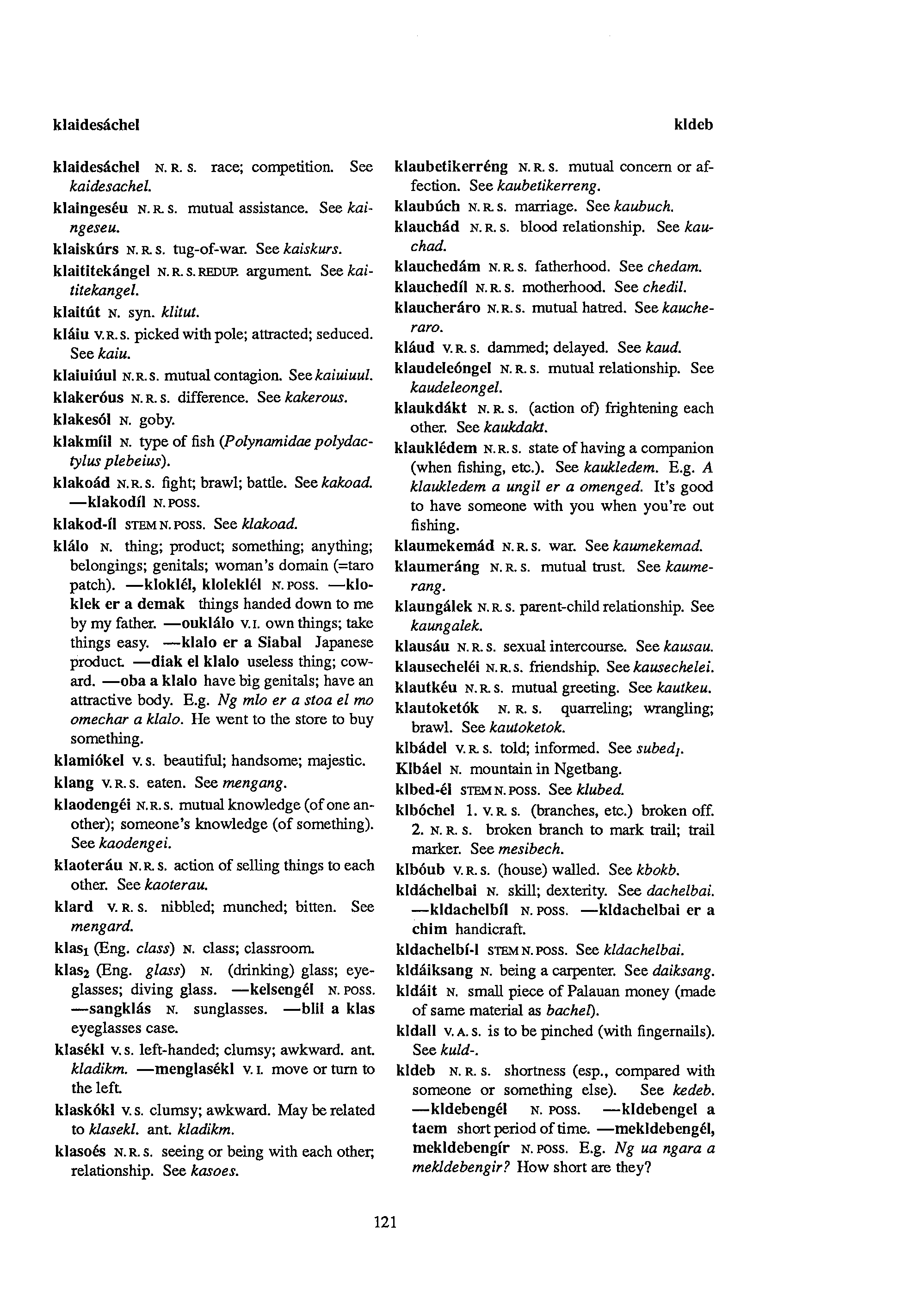 - klaumerang in Palauan-English Dictionary, at trussel2.com.