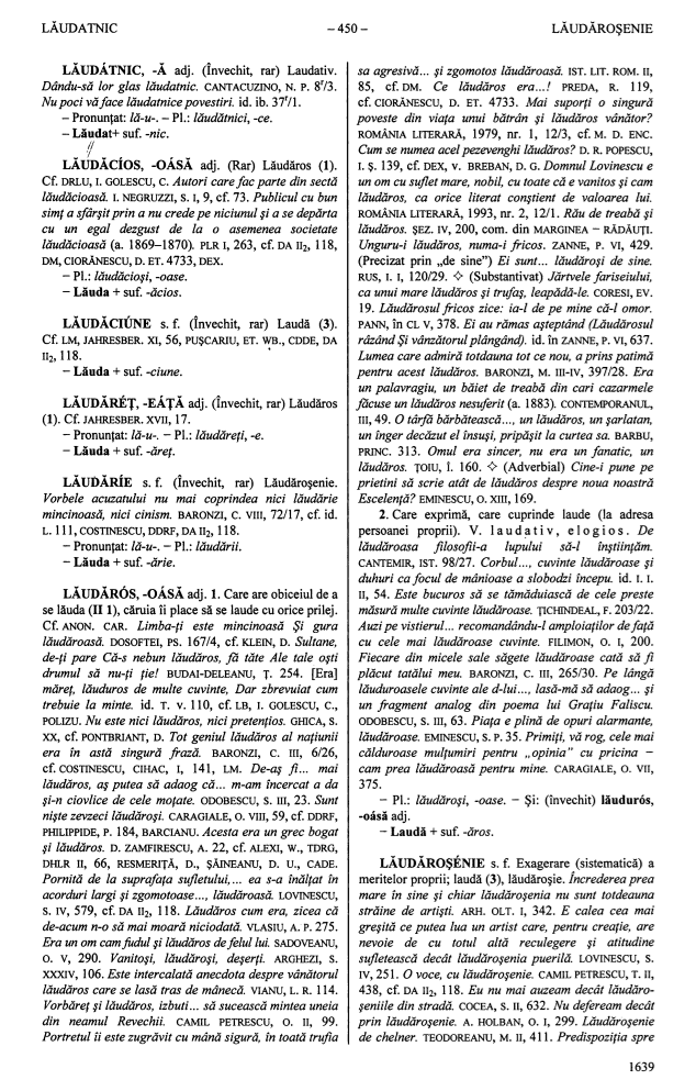 - “lăudatnic”, in DEX online—Dicționare ale limbii române (Dictionaries of the Romanian language) (in Romanian), 2004–2025