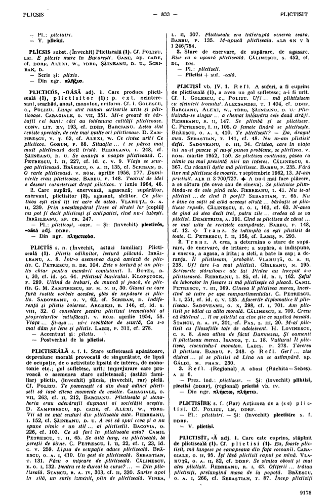 - “plictisi”, in DEX online—Dicționare ale limbii române (Dictionaries of the Romanian language) (in Romanian), 2004–2025