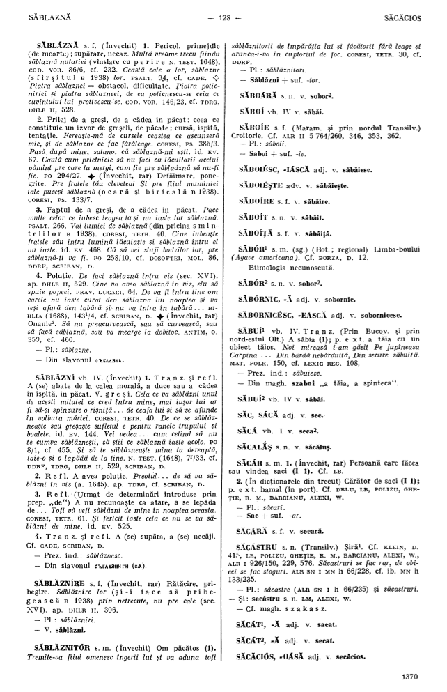 - Iorgu Iordan, Alexandru Graur, Ion Coteanu, editors (1986), Dicționarul Limbii Române[2], volume 10, part 1, Bucharest: Academy of the Socialist Republic of Romania, page 128