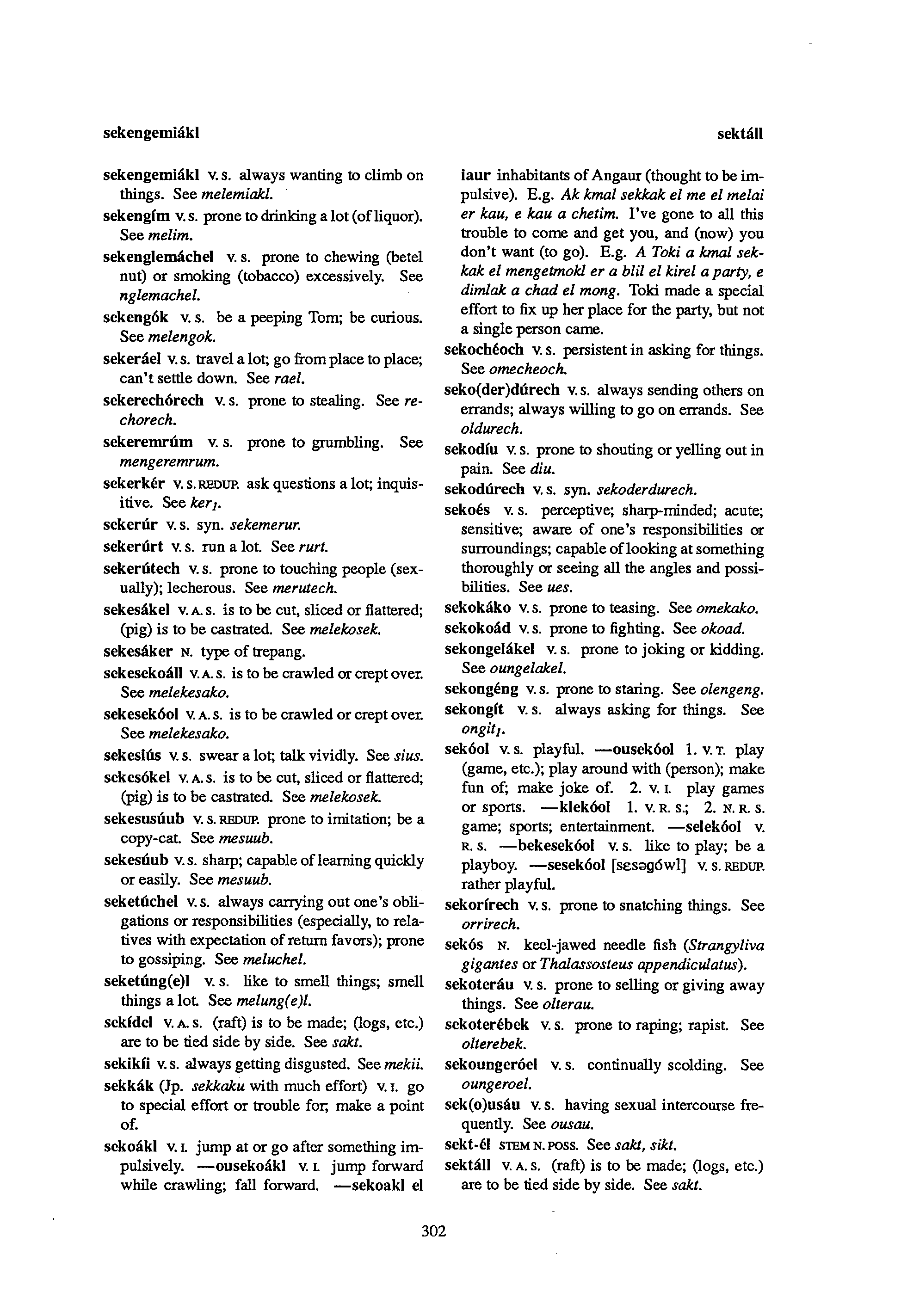 - sekkak in Palauan-English Dictionary, at trussel2.com.
